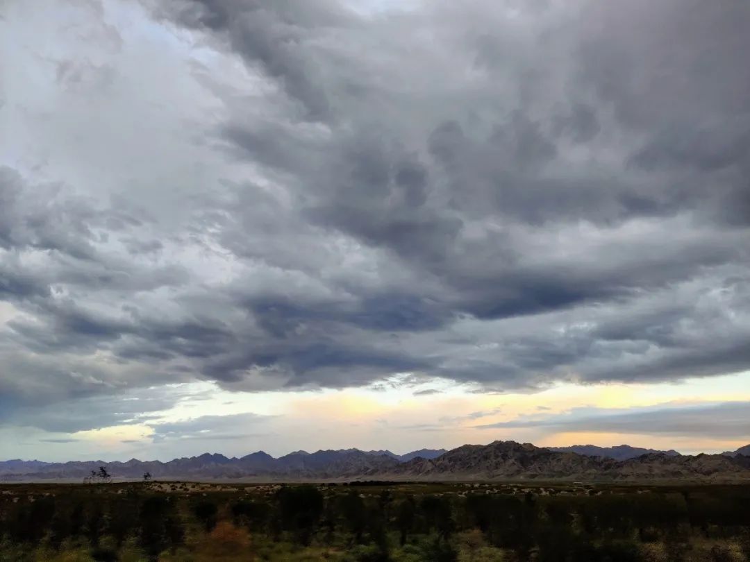 然而我們所在的綠洲已經被荒漠包圍:狼山以北便是茫茫戈壁,以及靠近蒙古國邊境的巴音温都爾沙漠。