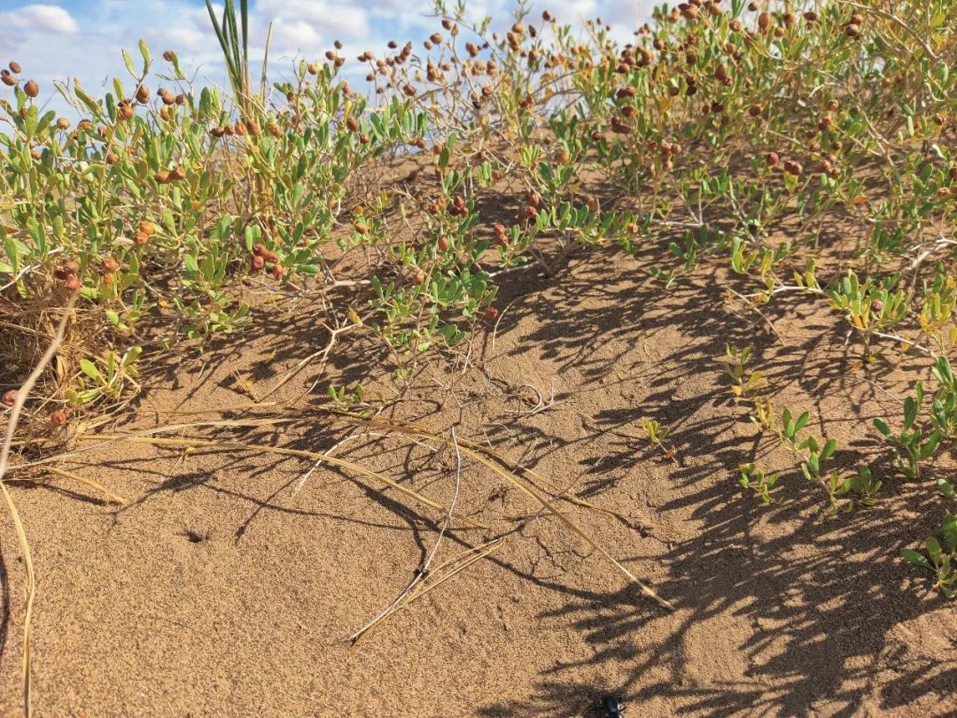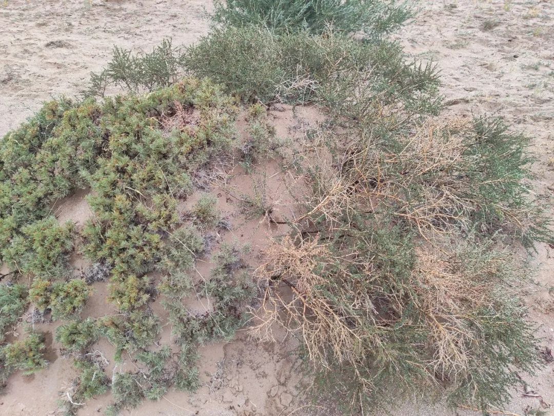 灌叢建羣種就這三家了。其它零星的小灌木,即使存在,也只能是荒漠的點綴。看到沙地裏抱團的植物,很難不讓人想到培養皿上的菌落。