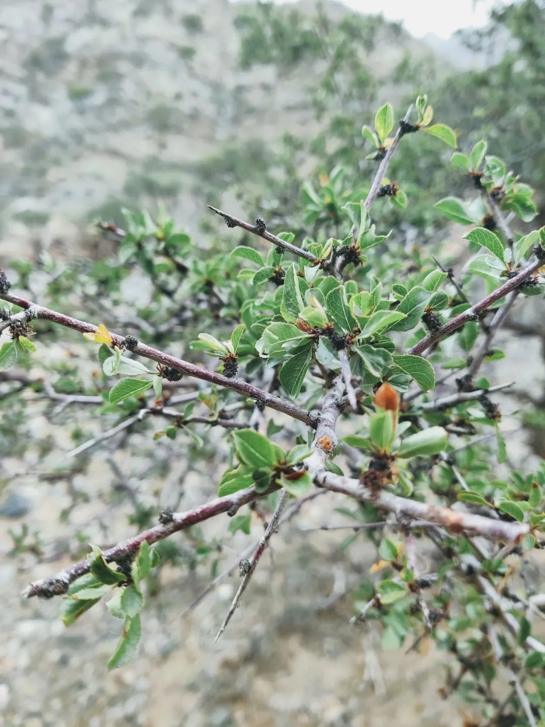薔薇科是個基本上安全的科,但有些種仁有毒,“苦杏仁味”可不是説着玩的,而且你不一定能認對。這裏薔薇科的皮孔和枝刺暴露了它的身份。