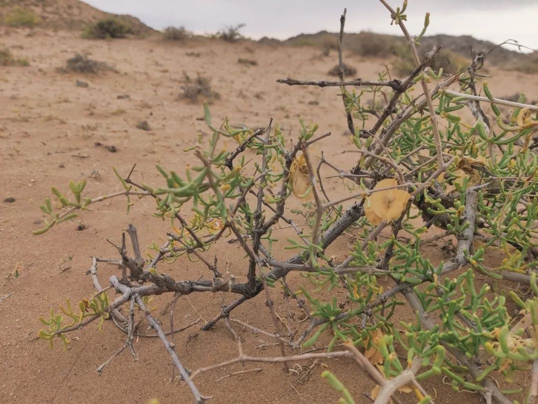 荒漠裏的植物,稀疏、不起眼,在乾旱逆境中頑強存活。