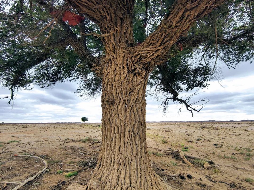 出現在這裏很難不讓善男信女掛紅布膜拜的榆樹們,可能是林鳥們在這荒原上僅有的棲息地 ©子馭