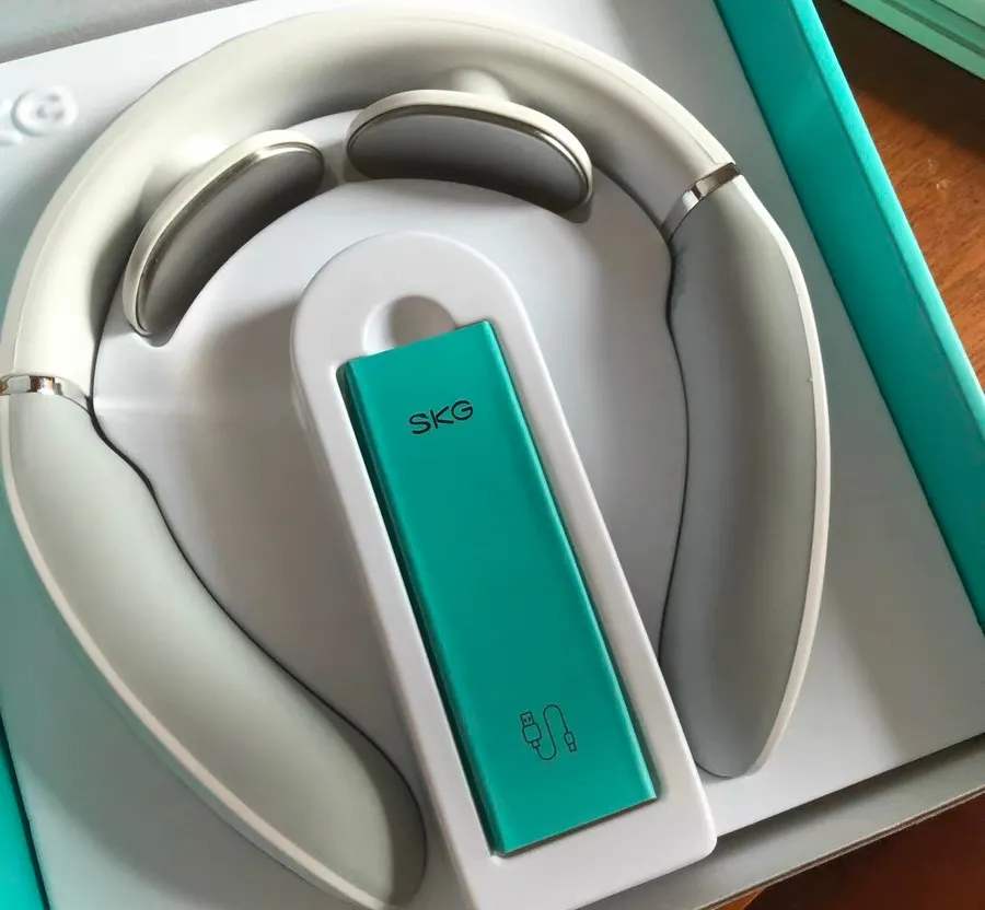 後來,SKG的肩頸按摩儀也火了,經常都出現在各種綜藝裏,那些明星掛在脖子上一臉舒適。我看着這按摩儀的介紹,什麼雙脈衝按摩技術、三檔温控、護頸高手,確實挺戳中我痛點的。於是,我心想着自己的頸椎可算是有救了,迅速買了當時的最新款。