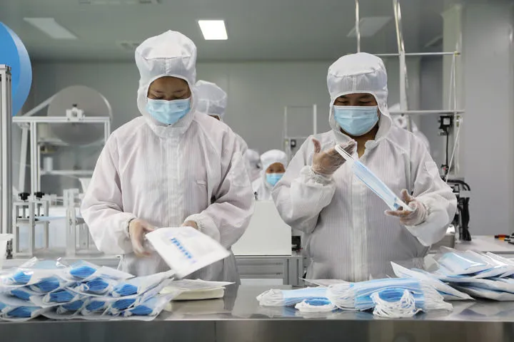 口罩是其中之一。2020年,中國口罩日產能產量一度雙雙突破1億隻。楊南在國內的企業訂單也持續上漲,襯衫變口罩,最高峯一週生產並出口700萬隻。