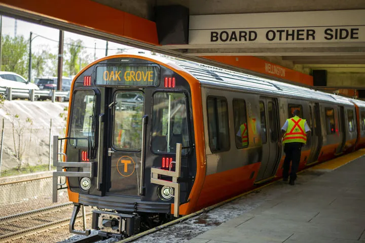 這是2018年5月15日在美國馬薩諸塞州梅德福德惠靈頓站拍攝的中車長客為波士頓橙線地鐵“量身訂製”的首批車輛。這批地鐵列車整車具有完全自主知識產權,是中國首批依照美國標準生產的地鐵車輛。新華社記者 李木子 攝