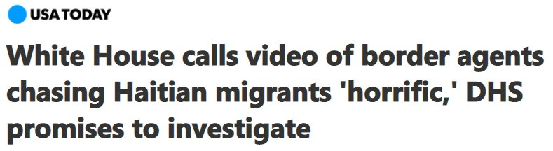 《今日美國》:美國邊境特工在馬背上追逐海地移民的視頻週一引起了憤怒,白宮新聞秘書珍·普薩基稱這些圖像“可怕”,民主黨立法者要求追究責任。