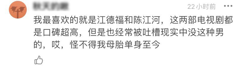 有人提到自己最喜歡的兩個影視劇形象,她平時也經常吐槽現實中沒見過這樣的男的,所以母胎單身至今。