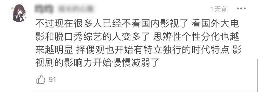 有人説,現在很多人不再看國內影視了,看國外電影和脱口秀綜藝的人在變多,受其影響也在逐漸變大。