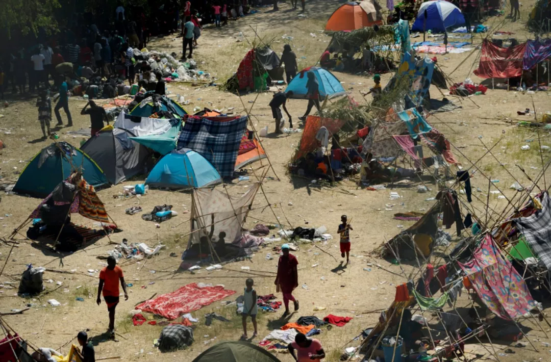 最近,上萬移民近日涉水穿過美國與墨西哥邊境河流、進入美國,“駐紮”在得克薩斯州德爾里奧市一座大橋下,並搭起臨時營地。