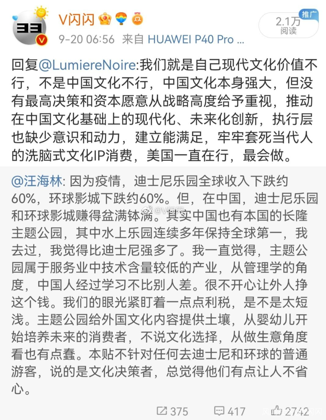 在中國(其他國家有這些美國主題樂園的也是),迪士尼和環球影城的建設、文化消費產品製造供應鏈、服務業就業、文化消費是個內循環,參與者基本都是中國人自己,中國必須為了保障好這個內循環做出巨大努力。