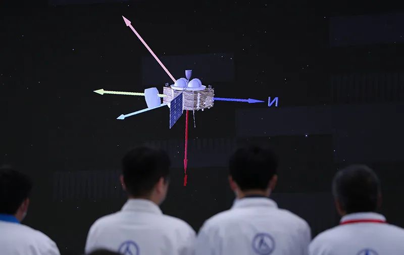 2021年5月15日,航天科研人員在北京航天飛行控制中心監測“祝融號”火星車工作情況。圖|新華社