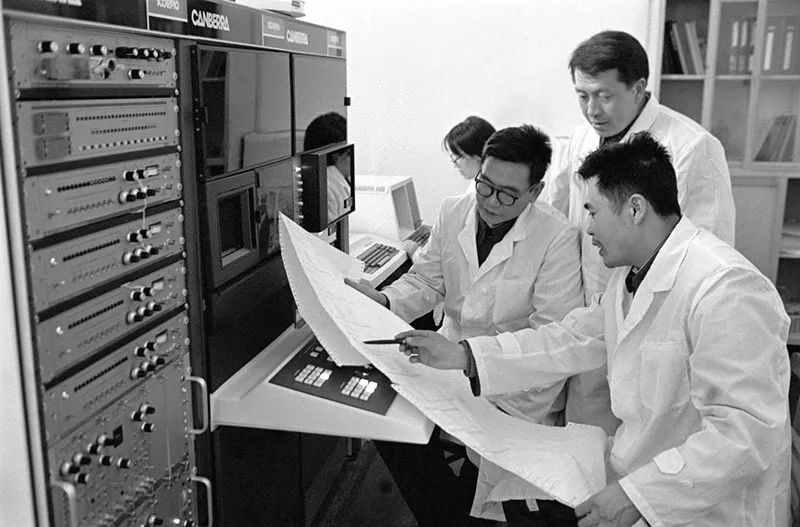 中國科學工作者在對美國贈送的月岩樣品進行研究。圖|新華社