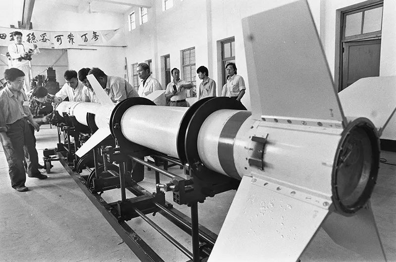 1991年1月22日,我國低緯席高空探空火箭“織女三號”在海南島西北部發射成功,射高為120公里。圖為技術人員對“織女三號”進行最後裝配。圖|新華社