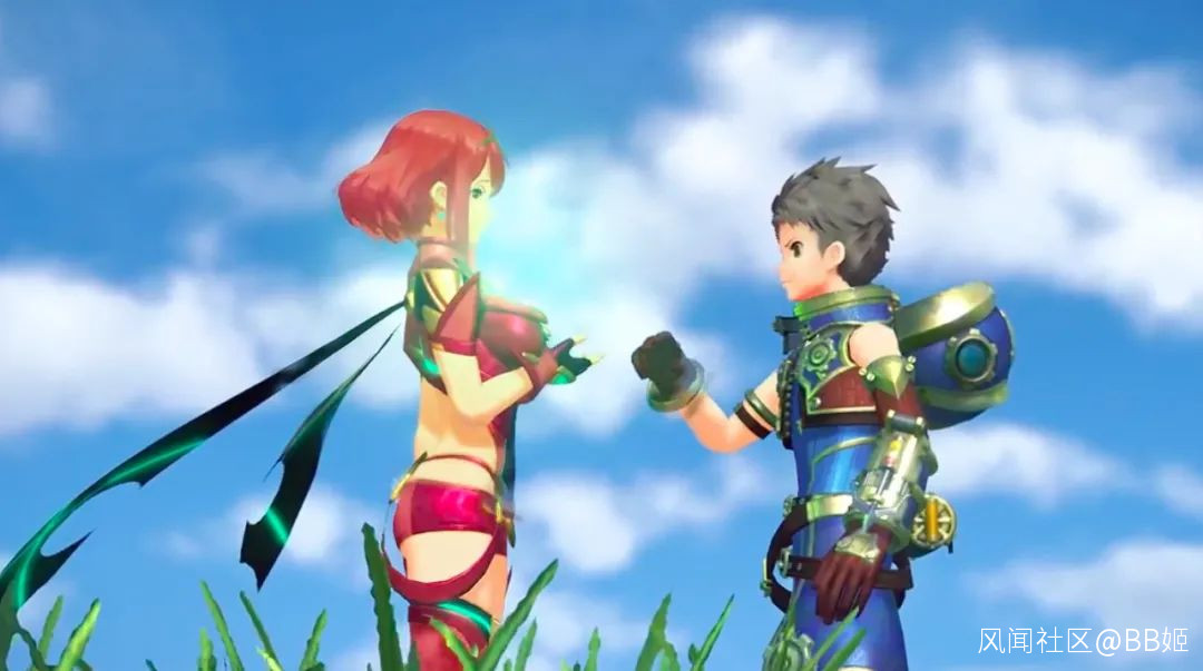 然後聊聊遊戲裏的妹中劍。其實這裏能找到的素材相對沒有很多,除了開頭提到的《原神》和《破曉傳説》,近兩年有關妹子拔劍印象最深的作品應該還是**《異度神劍2》**。況且,人家的劍是從胸口水晶裏釋放的,而非直接從光/焰的身體中取出。