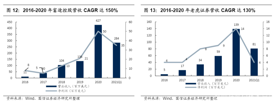 2016-2020年,富途營業收入的CAGR(複合年均增長率)高達150%,老虎則是130%。