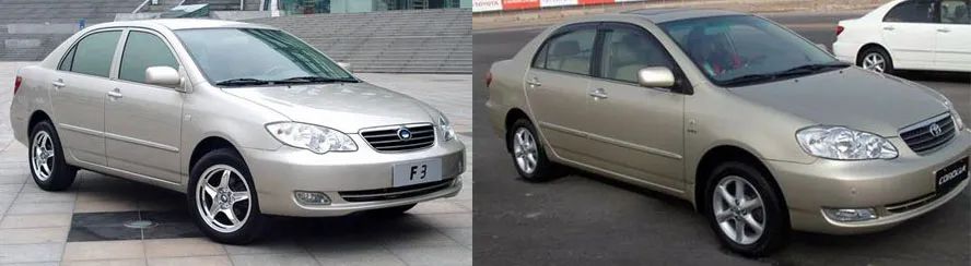 2005年,比亞迪又造出來一款車,而且取了個洋氣的名字——F3,售價僅7萬多。這款車乍一看特別像豐田的暢銷車型花冠,幾乎是硬生生移植了花冠的造型,而尾部又參考了三廂飛度,濃濃的“山寨”風。