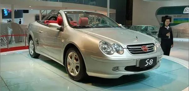 特斯拉Roadster驚豔亮相的次年,比亞迪推出了一款名為S8的硬頂敞篷跑車,底盤對標奔馳,外形與奔馳CLK酷似,定價20萬元左右。但上市後發現有個問題,敞篷經常收不回去,或放不出來,非常尷尬。這款車上線後總共也沒賣幾台,還被退掉了,後來放在比亞迪廠房里拉貨,當皮卡用。