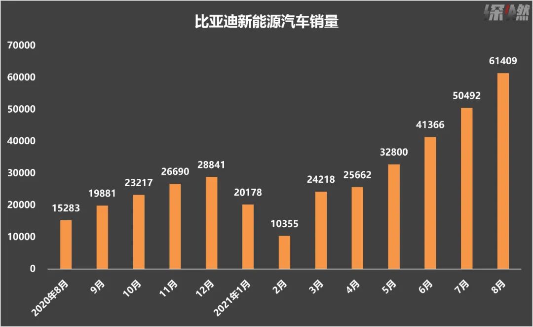這一局面直到今年下半年才有所改觀。7月和8月比亞迪國內銷量都超過了特斯拉,並在新能源汽車銷售總量上拿下全國第一。