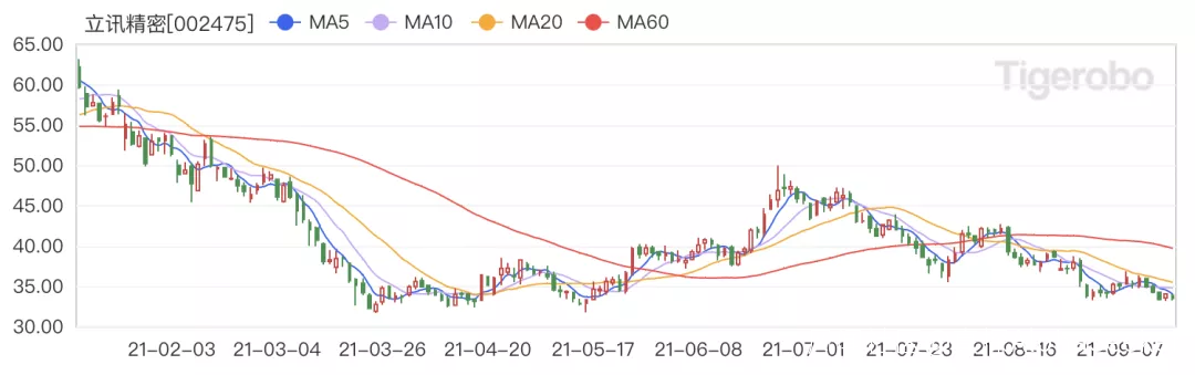 而壞消息是,作為與蘋果“同呼吸共命運”的供應鏈企業似乎與蘋果榮辱與共的時刻越來越少——去年發佈的iPhone 12雖然大賣,但果鏈企業的股價卻始終整體低迷;在今年蘋果股價創下歷史新高的時刻,不少A股蘋果供應鏈企業股價大幅回撤甚至有人幾近腰斬。自今年1月14日階段性高點以來,立訊精密、信維通信、領益智造等個股累計跌幅超過40%,藍思科技、鵬鼎控股、長盈精密等個股累計跌超30%。據統計,2021年半年報中,多家蘋果供應鏈公司業績大幅下降,37%的果鏈公司淨利潤同比下滑。