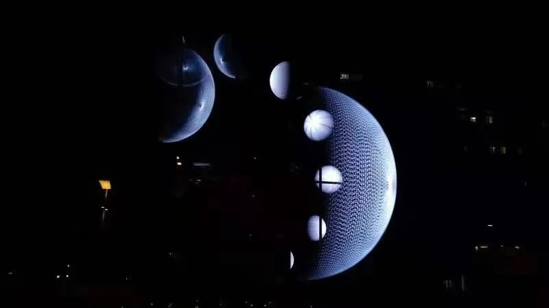 它以真實月球的縮影來到一座又一座城市,懸掛在街道外或建築內部,與當時的城市和人們進行着不同的對話。