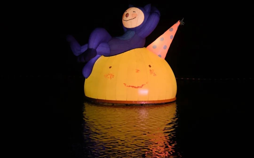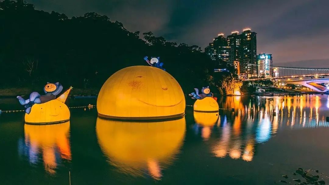 為了紀念這部繪本滿20週年,在台灣新店碧潭地景藝術特意打造15米的巨大漂浮月亮,吸引着很多人前來打卡。