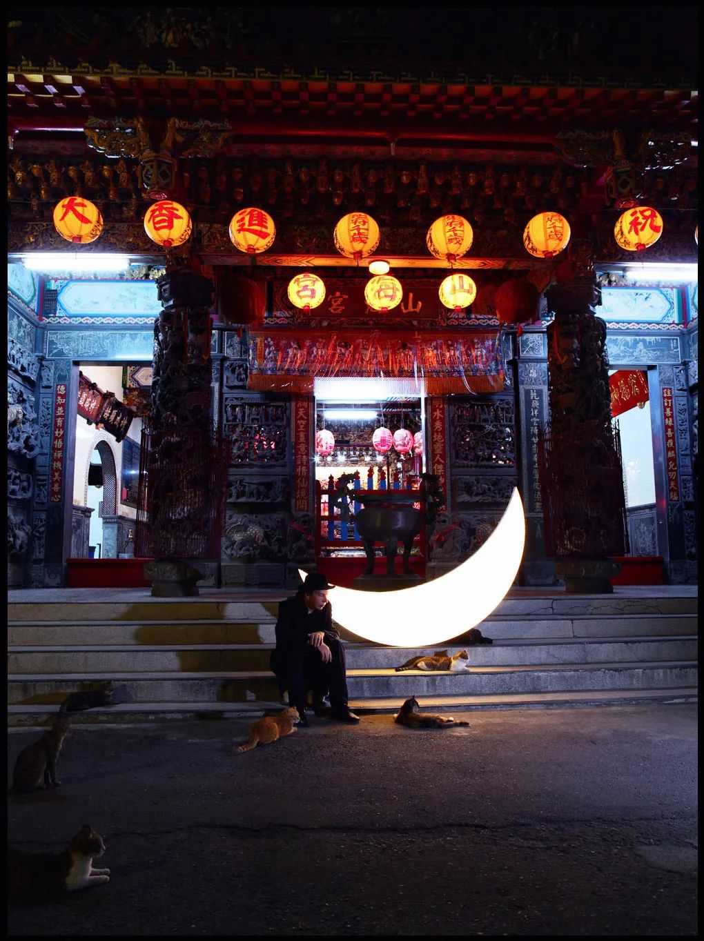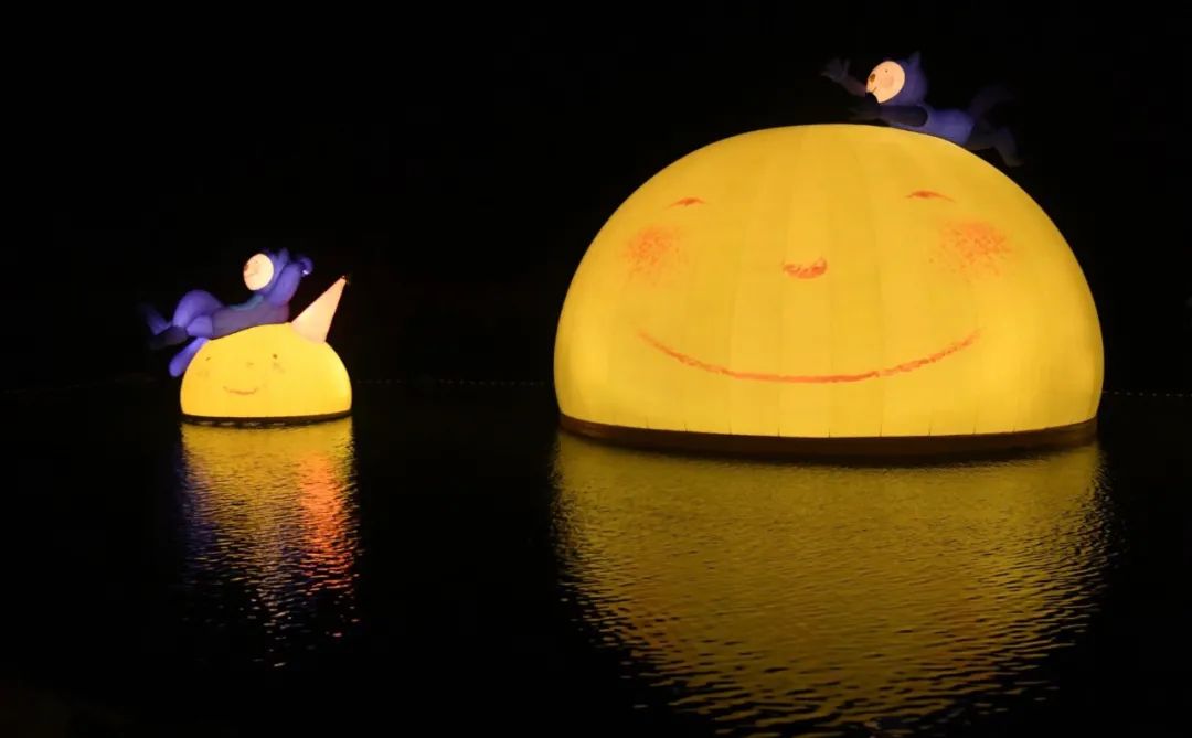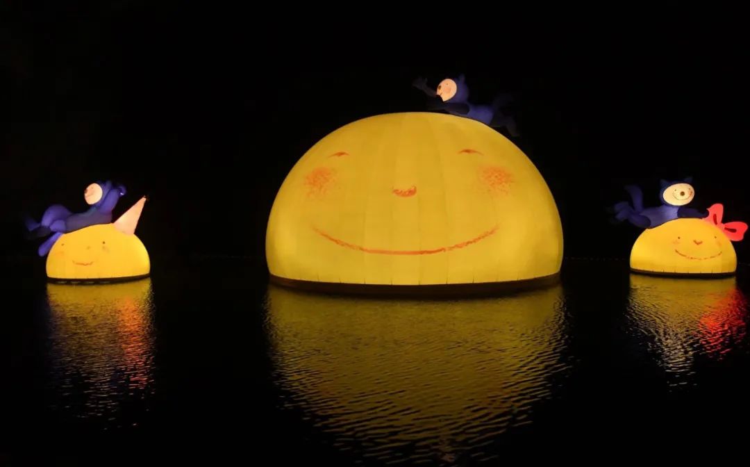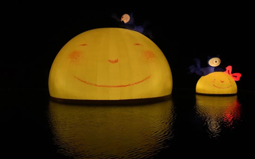 白天能看到小男孩與月亮相依相偎的俏皮模樣,夜晚能觀賞三個月亮相互輝映,他們就像幾米的繪本一樣撫慰着許多孤單的心靈。