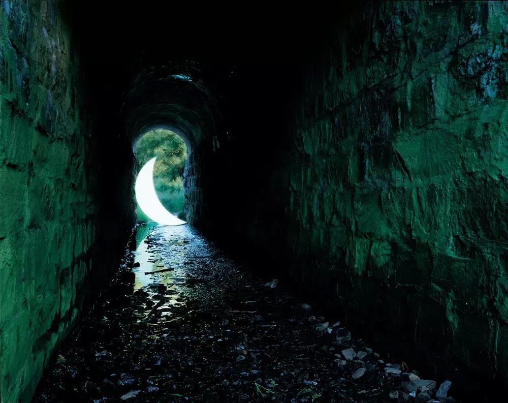 James Russell和Hannah Plumb將他們合作的創意工作室地點定在穆森登神廟,他們回收着覆蓋地衣的玻璃,藉助月亮及其燈光,製造了這款“彩色月亮”的裝置。