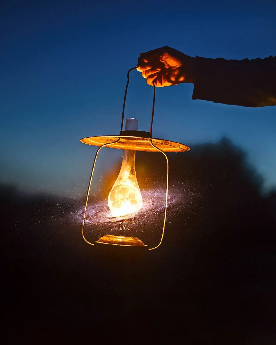 在他的攝影機下,月亮可以是提在手裏的照明燈。