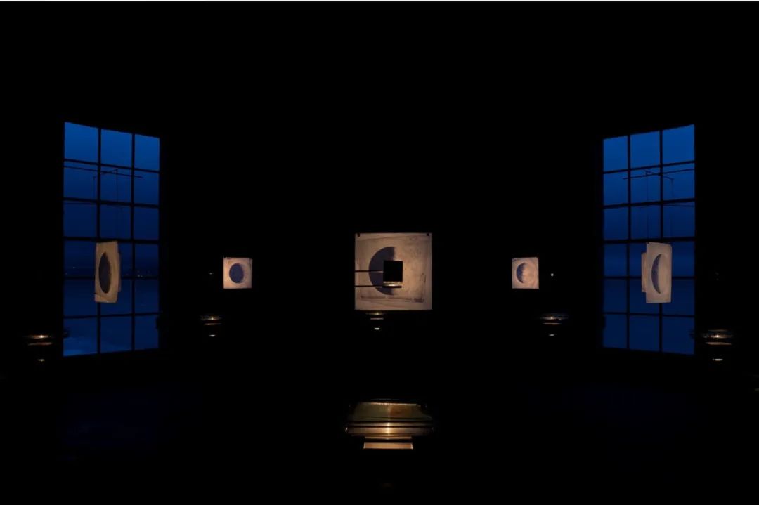 圓形互相重疊,隨着觀眾角度與距離的變化,變幻成一個個不同形狀的月牙。