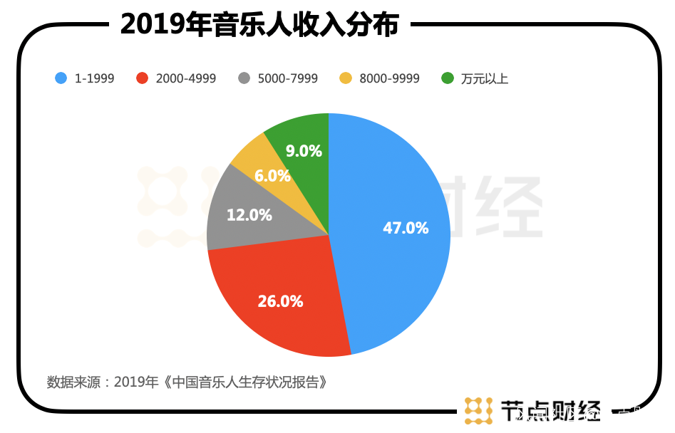 近年的《中國音樂人生存狀況報告》顯示,絕大多數音樂人仍生存比較艱難,2019年近半數音樂人的税前月收入在2000元以下;2020年雖有好轉,但做音樂是個燒錢的事業,其實多數音樂人仍然是入不敷出。