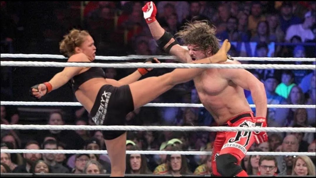 不僅有專門的女性聯賽,有時候WWE還安排男女選手對打。