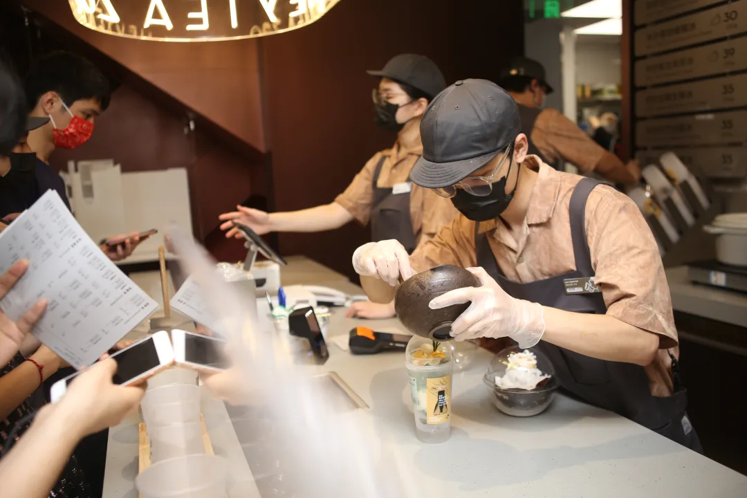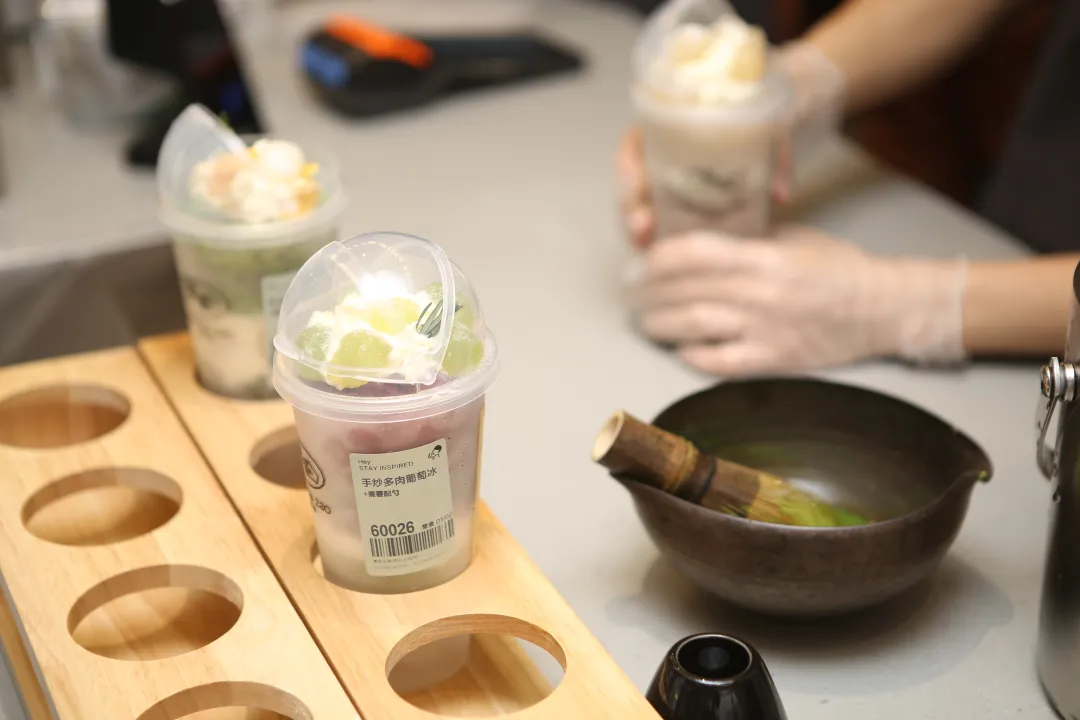 比如手剝葡萄、手工油柑去核、手工楊梅去核,以及各種手打芝士、現煮茶湯等等,今年熱賣的暴檸茶,需要店員用定製搗棒將每顆檸檬手工捶打35下以上製成。