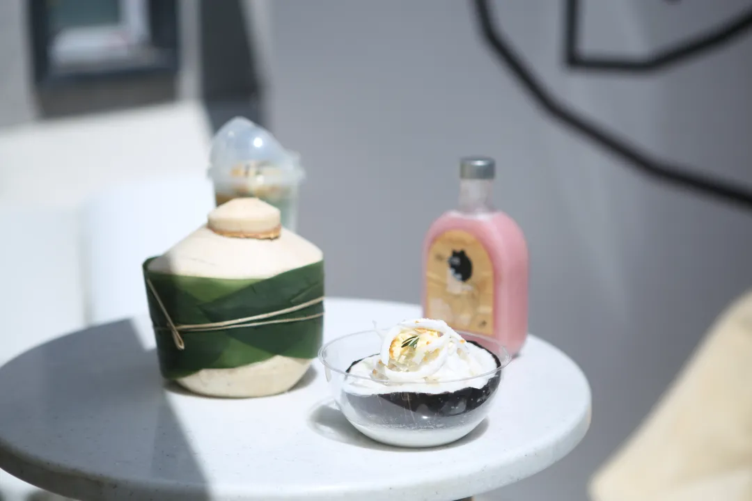 **水果的呈現方式上,**手炒生打椰皇冰用椰皇殼盛放;手造茶產品上,配有一串新鮮水果,既滿足“有吃有喝”的多重風味體驗,又傳遞了水果的鮮感。