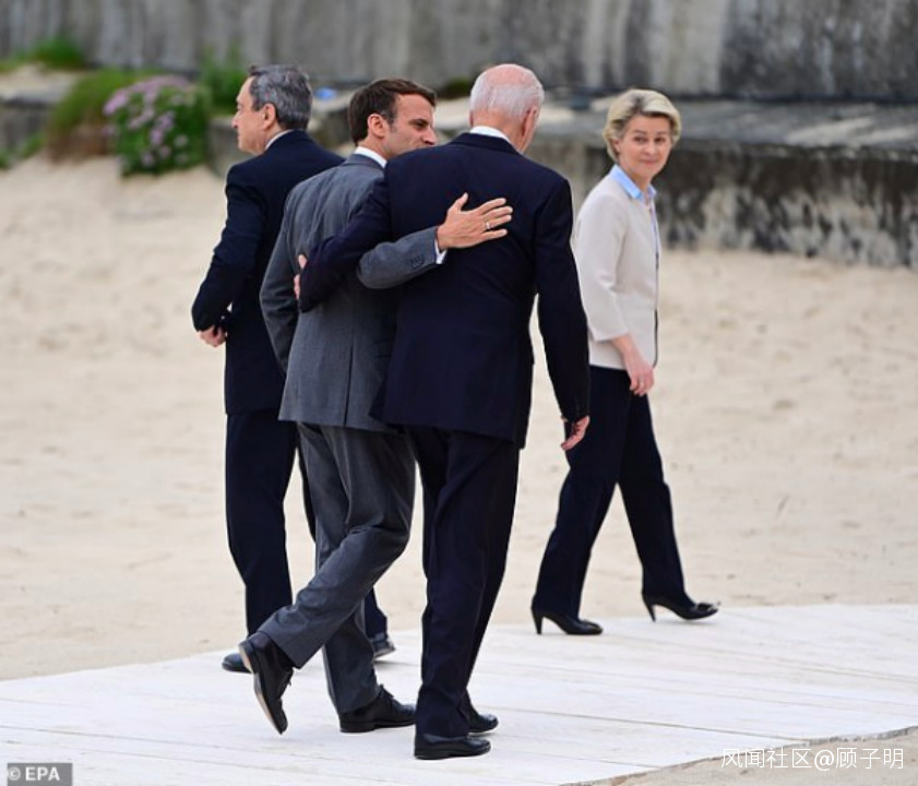 要知道,這次峯會馬克龍可謂是大放異彩,那天G7合影拍攝後,各國領導人散開之後,卻看見拜登和馬克龍勾肩搭背。
