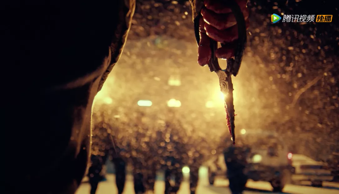為了讓畫面裏演員的左手出鏡更自然,全劇組又噴了一遍案板上的血漿,再來一次。