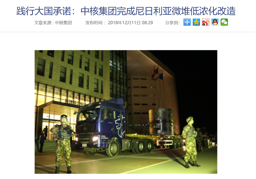 12月6日,裝載着銀色圓形容器的重卡在軍警嚴密護衞下緩緩駛入中國原子能科學研究院。