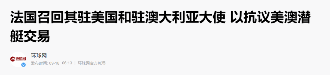 9月17日法國外長突然宣佈一個重磅消息,法國即刻召回駐美國和駐澳大利亞大使。