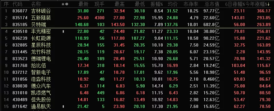 自北交所設立消息發佈後,新三板精選層個股全線大漲,甚至出現了一家市值超500億的公司——貝特瑞(NQ:835185),截至9月17號收盤,貝特瑞總市值達722億元。