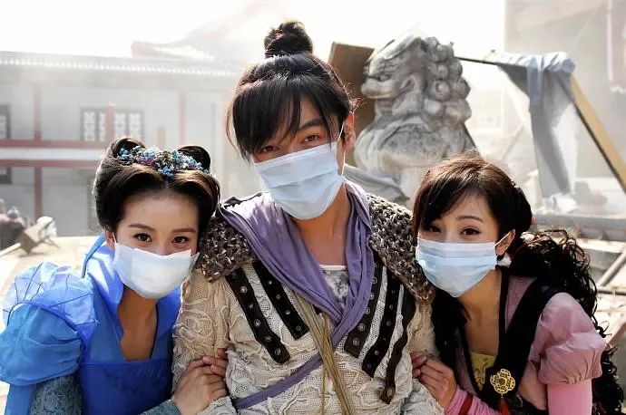 《仙三》片場,胡歌和劉詩詩、楊冪。