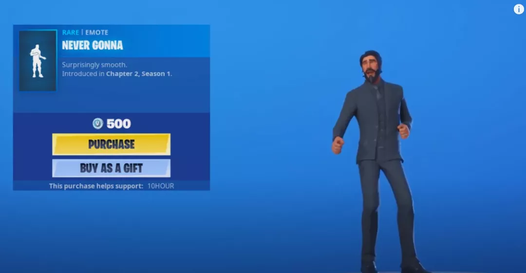 去年年初,《堡壘之夜》也試圖蹭一蹭這個梗的熱度,但使用的手段也不再是十多年前的“標題黨惡作劇”,而是直白地將MV裏Rick舞蹈做成了一個表情動畫: