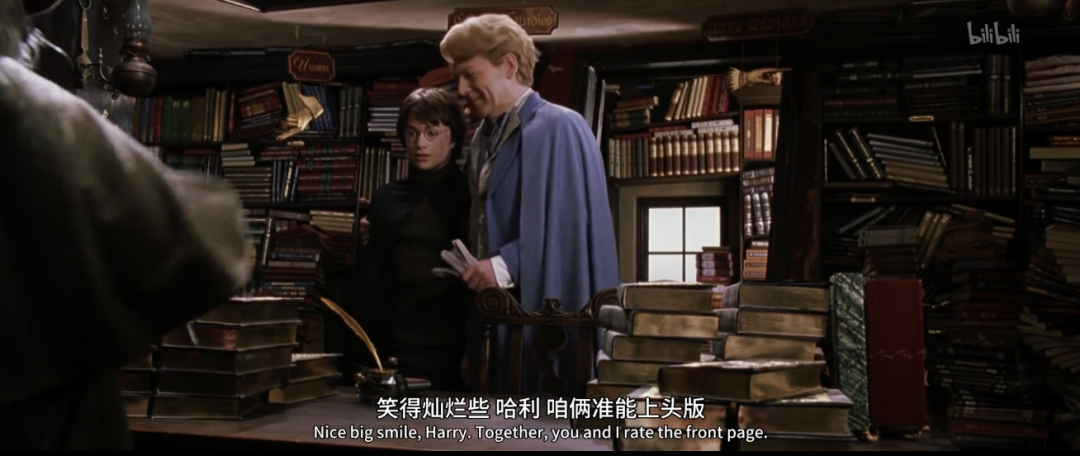 他陪着哈利一起來到了對角巷,破釜酒吧裏的人們看到哈利,激動得和他一一握手。