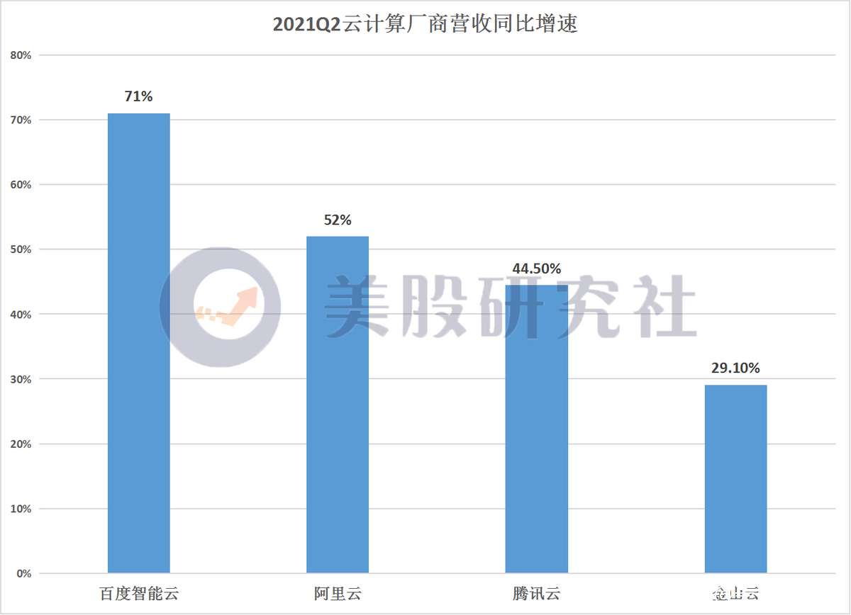 同時雲計算業務成為不少科技巨頭中期成長的第二曲線,在業績層面已經得到驗證。最新一個季度財報顯示,百度智能雲營收同比增長71%,同期阿里雲營收同比增長29.1%、騰訊雲營收同比增長52%、金山雲營收增長44.5%。