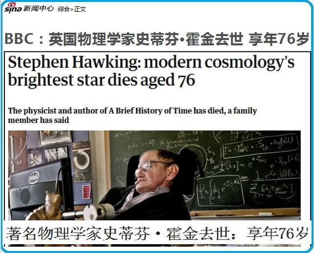 畢竟在西方甚至全球物理學的象牙塔裏,從未有物理學權威機構正式授予霍金“第一”的榮譽稱號,只有供職單位對他有過“之一”的榮譽評價。估計中國的親美大V們,各個都以為自己是《自然》,可以隨便給人授勳了吧。外媒對他去世的訃告內容是:“著名物理學家史蒂芬·霍金去世,享年76歲。” 請各種大V們自重,不要擅自篡改別人的訃告。篡改,是對逝者的極大不尊重。
