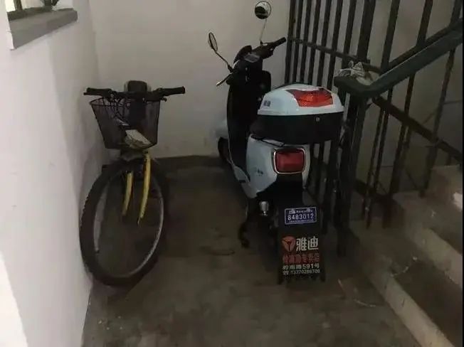 門口放着一個未在充電狀態的電瓶,保潔阿姨上前查看。