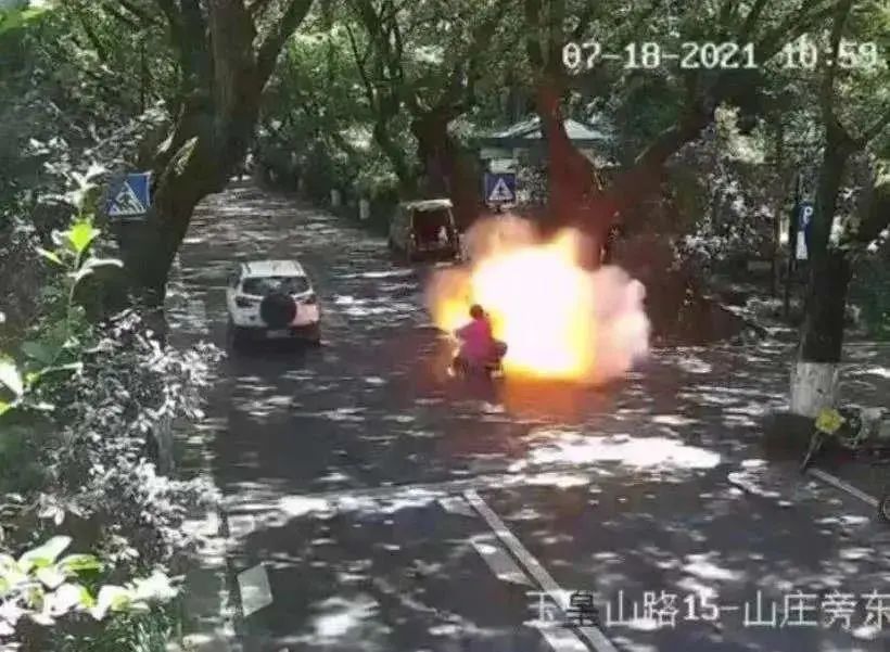 今年7月18日中午11點左右,杭州西湖景區的玉皇山路上,發生一起電動車自燃事故。