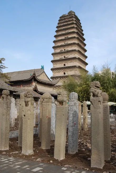 在2000年左右,小雁塔東南的一個庭院中樹立了大量栓馬樁,裏面還有一塊唐碑,搭配起來非常有感覺。