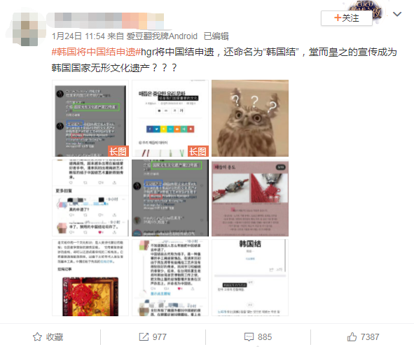 2021年1月,有網友發現,韓國又準備拿中國結來申遺,並且還把中國結改成了“韓國結”。