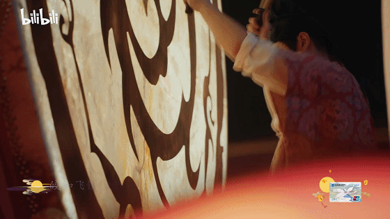 這個節目中出現的中原鳳鳥鼓車,華蓋來自傳統的斗拱結構和唐朝鴟尾,地毯則是敦煌復原寶相團花,鼓上的花紋則融合了三足金烏和太陽神鳥金箔。