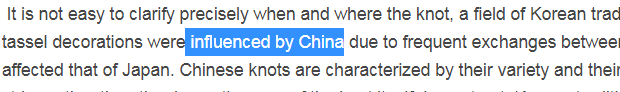 網站的介紹裏説,雖然不知道韓國繩結究竟起源於何時,不過韓國的繩結受到了中國的影響。