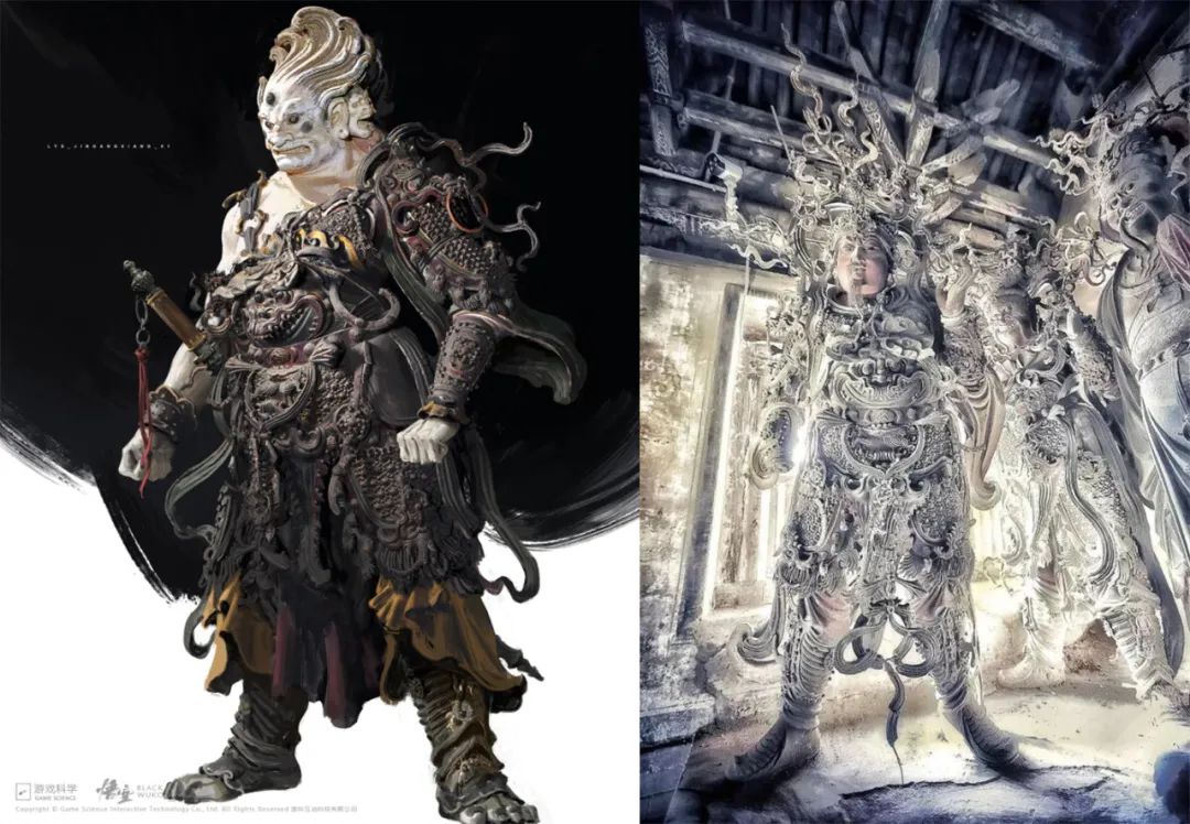 遊戲裏很多角色身上的鎧甲,直接借鑑了山西高平鐵佛寺中的塑像。難道會有人覺得這些傳統雕塑和鎧甲放在遊戲裏,比不上日式風格的造型?