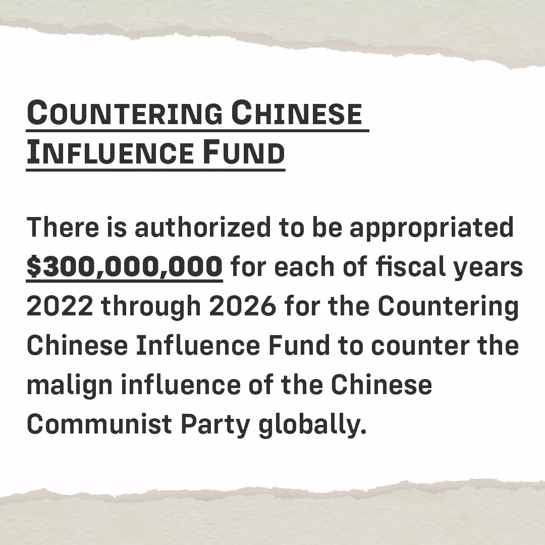 ▲ 2021年4月,美國國會參議院外委會通過“2021戰略競爭法案”,其中提出要在2022至2026財年每年撥款3億美元用於“應對中共惡意影響”